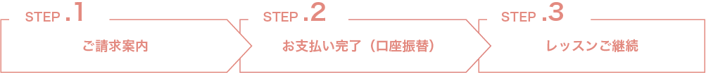 引き続きレッスンをご受講下さい。尚、お支払い期限日にご指定の銀行口座残高不足、もしくはその他理由で口座引落ができなかった場合、別途、口座振替手数料はご負担頂きます。